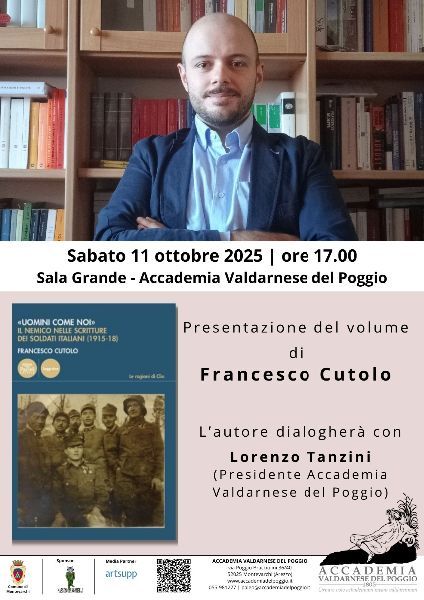 Sabato 11 ottobre l’Accademia Valdarnese del Poggio avrà il piacere di ospitare nuovamente Francesco Cutolo che, alle ore 17:00 nella Sala Grande, presenterà il suo ultimo volume “Uomini come noi.