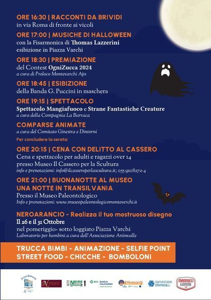 Racconti del terrore nei vicoli, musiche di halloween, comparse animate, il contest della zucca, l’esibizione in maschera della Banda G. Puccini, ma anche street food a cura della Proloco, lo spettacolo di Mangiafuoco, per una serata da paura.