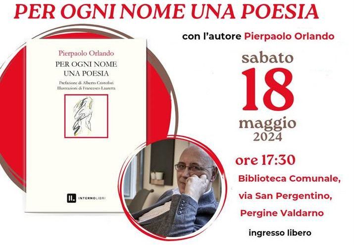 "PER OGNI NOME UNA POESIA" con l'autore Pierpaolo Orlando , alle ore 17:30 , presso la Biblioteca Comunale, via San Pergentino, Pergine Valdarno.