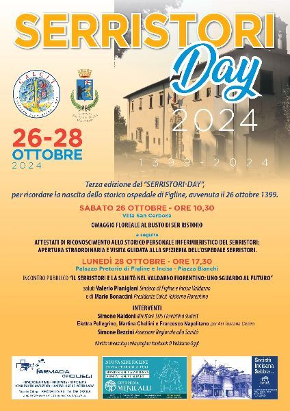 Per il terzo anno consecutivo il 26 ottobre inizierà a Figline e Incisa Valdarno il “Serristori-Day”: due giorni di iniziative che ruotano intorno al tema della sanità, le quali si svolgeranno all'interno della manifestazione che, da un punto di vista storico, intende ricordare il 26 ottobre del 1399, giorno in cui il ricco notaio fiorentino Ser Ristoro (di origini figlinesi) dettò in Santa Croce il suo testamento, con il quale legò una cospicua parte del suo patrimonio per la realizzazione di uno "spedale" in Figline.